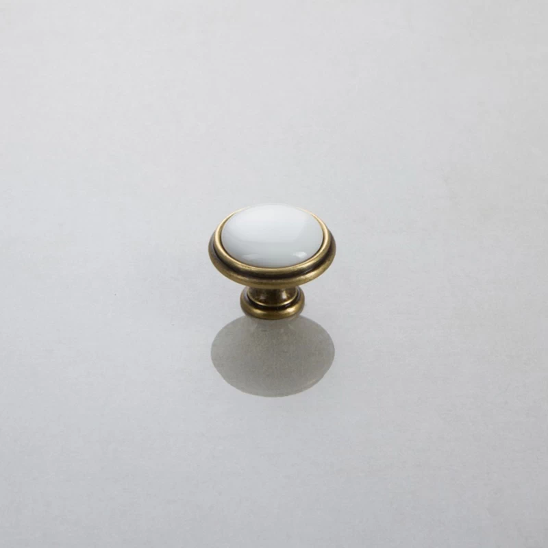 Мебельная ручка-кнопка Giusti РГ 625 P77.00.00.D1G Старое золото с белой керамикой