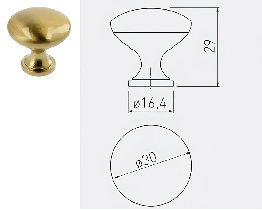 Мебельная ручка кнопка GTV TERNI D-30 мм Золотая латунь
