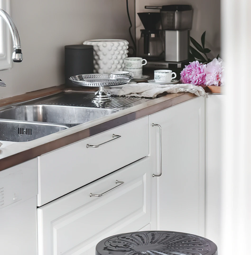 Прекрасно подходит не только для кухнной мебели, но и как ручка на дверце шкафа в прихожей или на комоде в ванной комнате.