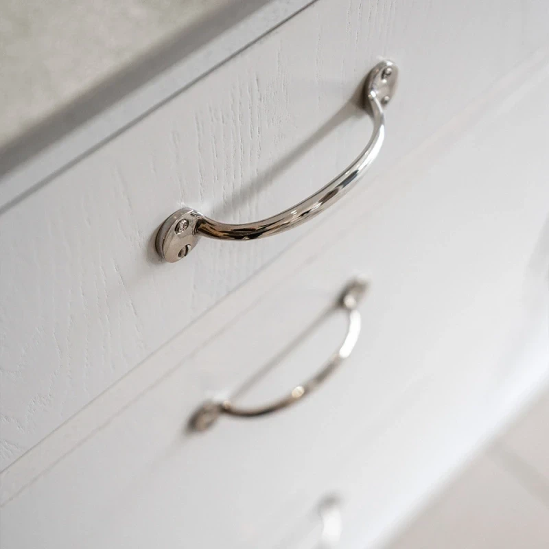 Прекрасно подходит не только для кухнной мебели, но и как ручка на дверце шкафа в прихожей или на комоде в ванной комнате.