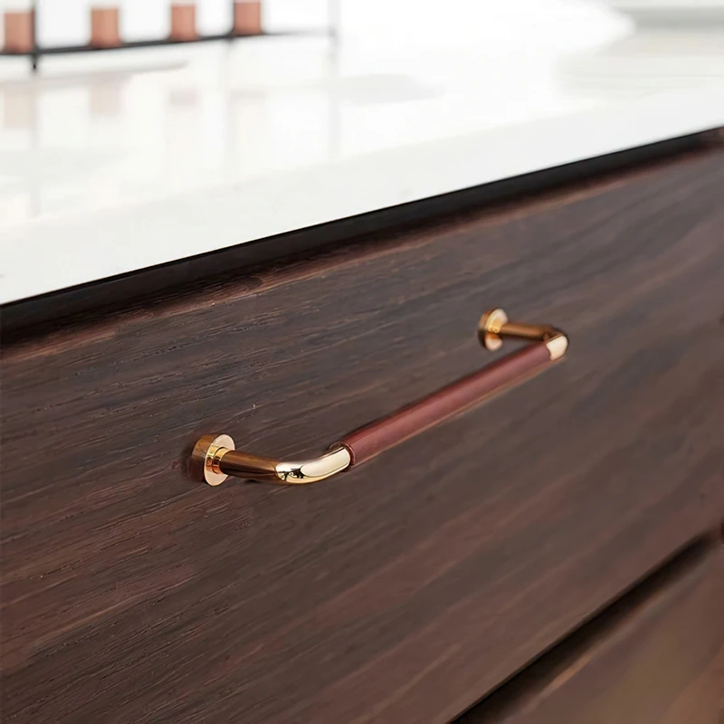 Мебельная ручка металлическая Beslag Design LOUNGE 370103-11 Латунь/Натуральная кожа