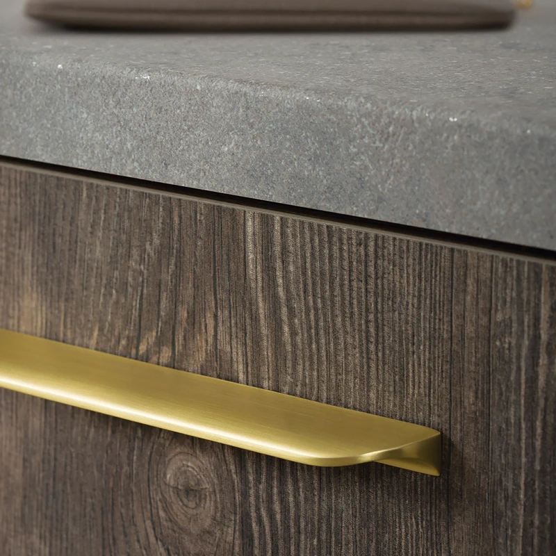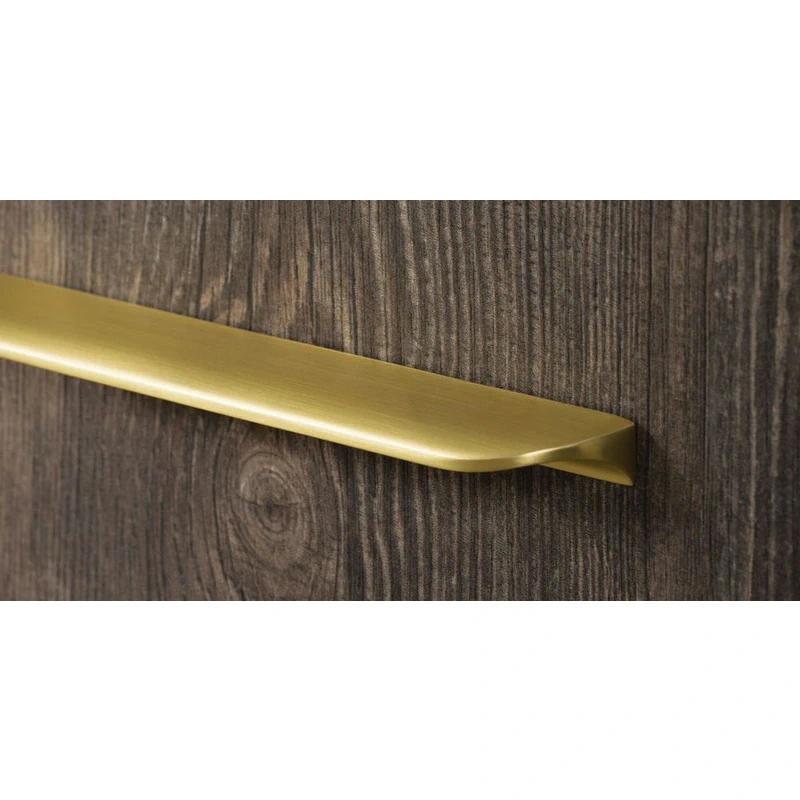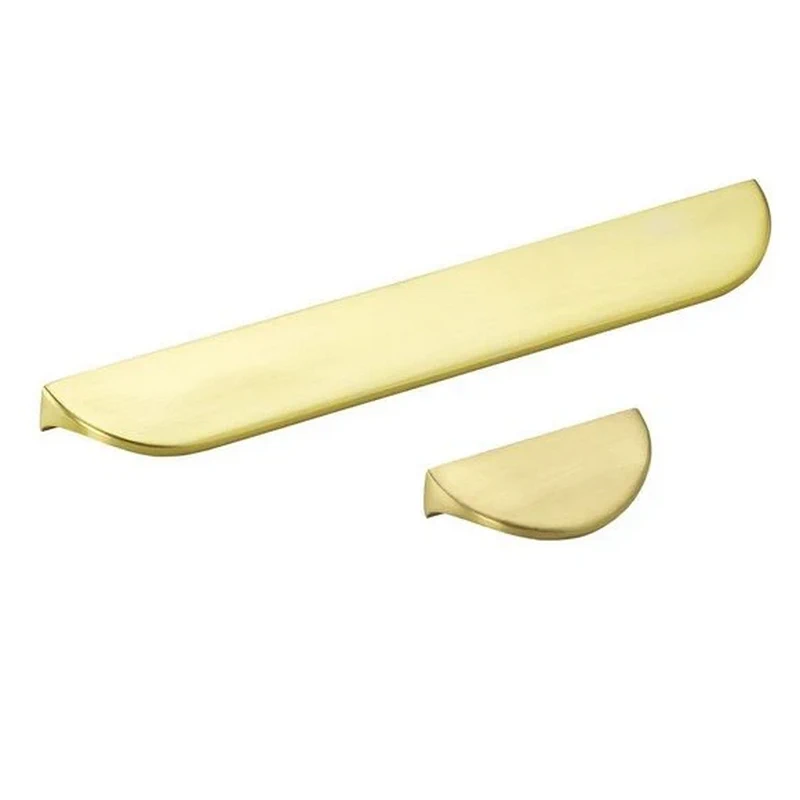 Елегантні ручки, які чудово вписуються до сучасної кухні, доступні у двох варіантах довжини та кольорах: матова латунь і нержавіюча сталь.