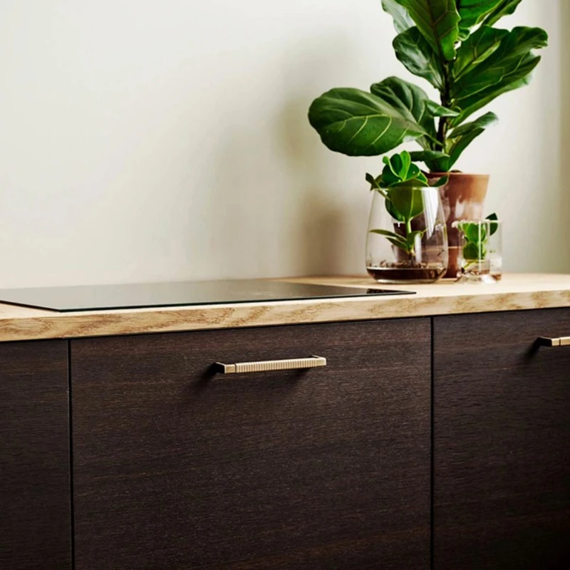 Ручка доступна в длине 160 мм и трех цветах: матовый черный, нержавеющая сталь и матовая латунь.