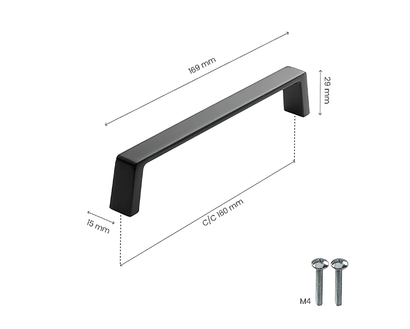 Доступна в двух вариантах длины 160 и 320 мм, и двух цветах: черная матовая и нержавеющая сталь.