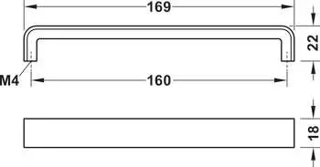 Мебельная ручка Hafele 10669461, цамак, никелированный матовый, 169x22мм