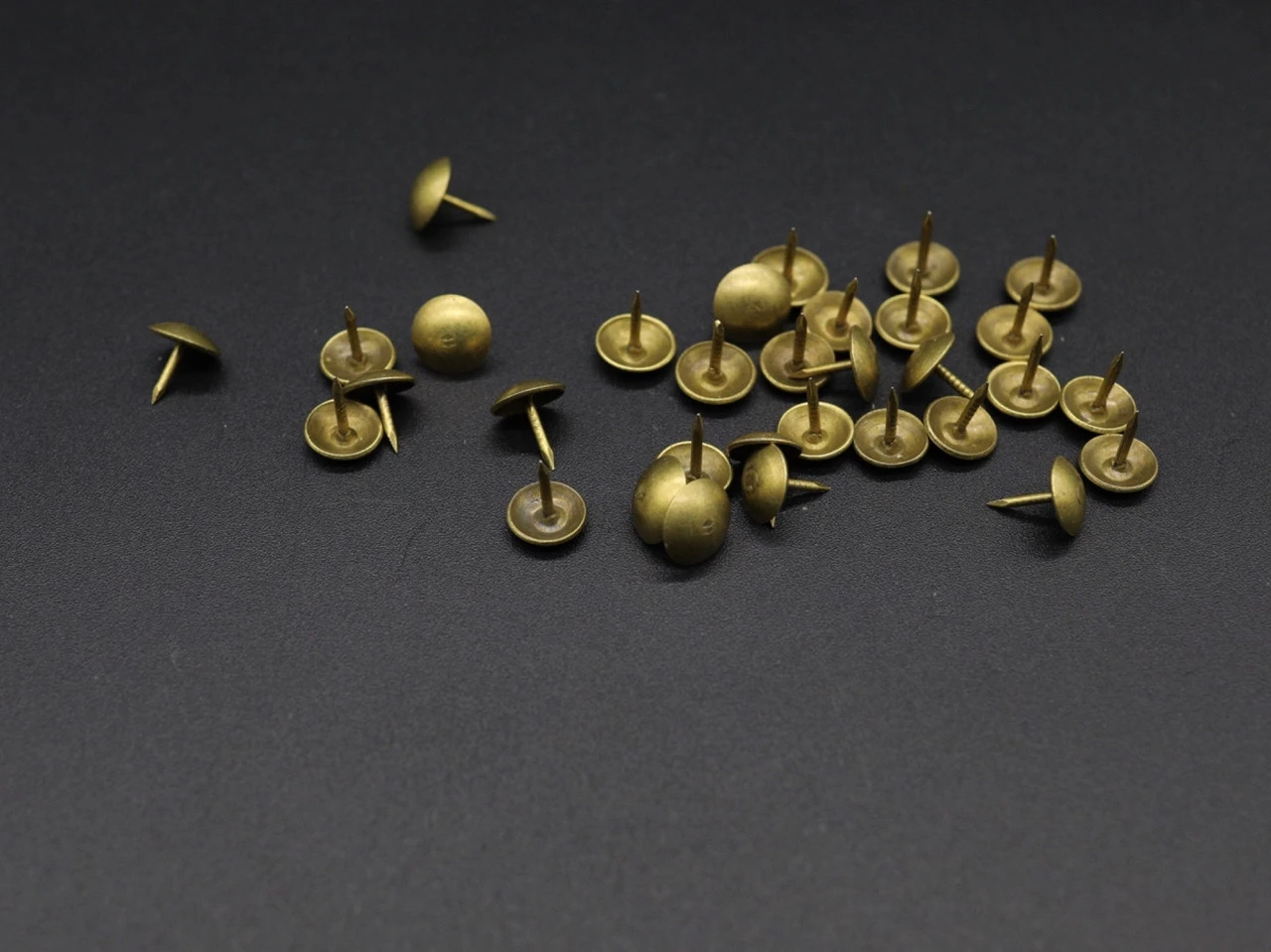 У всех декоративных гвоздей главной особенностью является шляпка. Чаще всего она сферическая, но бывает и плоской, поверхность может быть гладкой и рельефной. В нашем ассортименте есть разнообразные варианты, поэтому вы легко сможете выбрать нужную разновидность по форме и размеру (с большой шапочкой, с длинной ножкой или короткой, тонкой или толстой). Также при выборе учитывается размер (это есть стандарты, и в нашем каталоге этот параметр указан к каждой товарной позиции).
