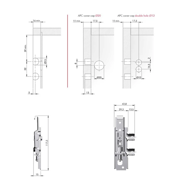 Мебельный подвес APC6 Italiana Ferramenta скрытый левый