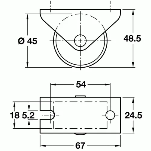 - Простой монтаж: удобная монтажная пластина с расстоянием между отверстиями 54 мм позволяет легко установить ролик на мебель.
