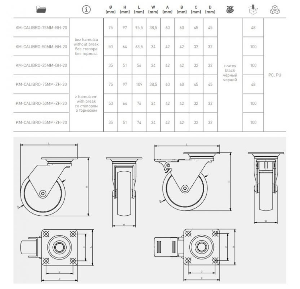Мебельный ролик GTV CALIBRO d-50 40 кг KM-CALIBRO-50MM-BH-2 Черный + Хром – это высококачественный ролик, который сочетает в себе стильный дизайн, долговечность и функциональность. Идеально подходит для офисной и домашней мебели.