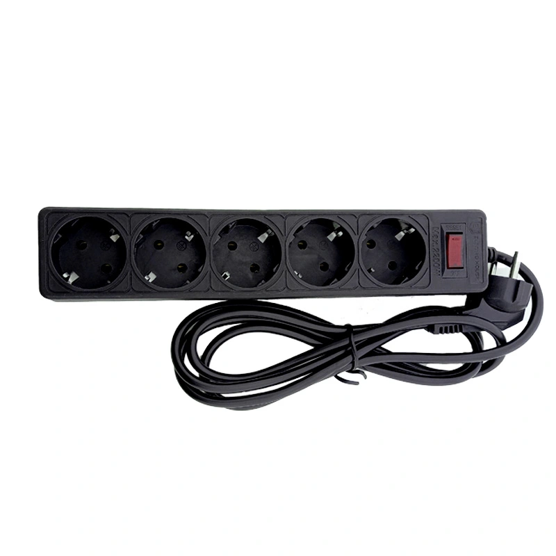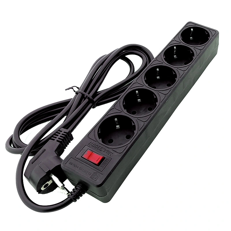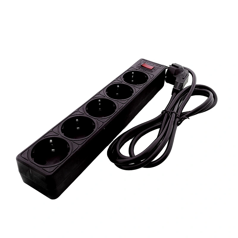 Сетевой фильтр с заземлением, 5 розеток, 2 м, черный