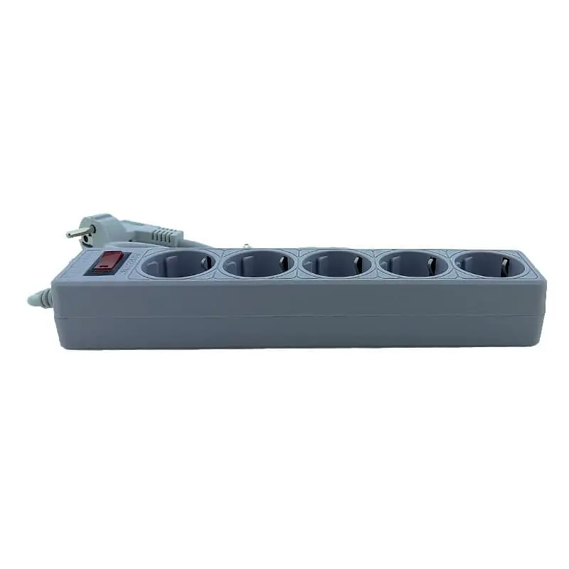 Сетевой фильтр с заземлением, 5 розеток, 2 м, серый