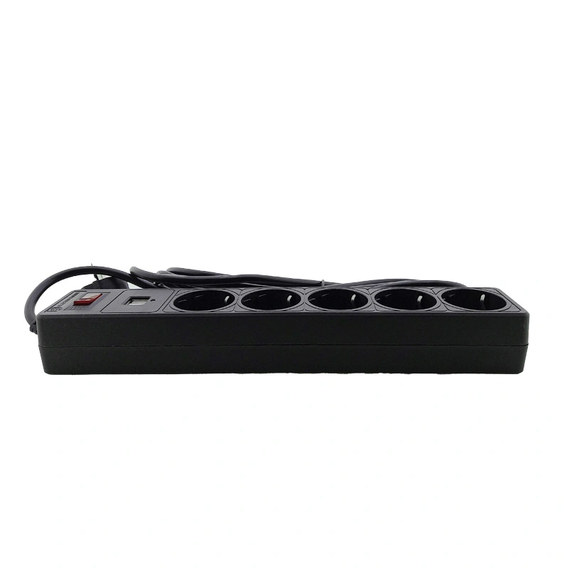 Сетевой фильтр с заземлением 5 гнезд + 2USB, 3 м, черный, защитные шторки EH-NFBU-5.3 от ElectroSpace — это идеальный выбор для обеспечения безопасности ваших электроприборов. .Он позволяет включить несколько электроприборов в одну розетку одновременно, что делает его удобным для использования в домашних условиях или в офисе.