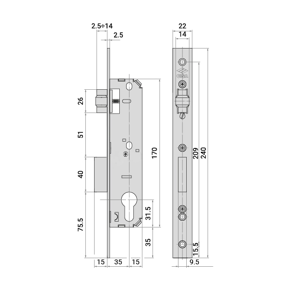 CISA 44671 – це замок, який встановлюється врізним методом у вхідні розпашні двері з алюмінію або металу. За потреби його можна використати і у хвіртках. Використовується в якості основного замка – керується лише серцевиною стандарту EURO DIN. Вона в комплект не входить та докуповується окремо в залежності від Ваших потреб.