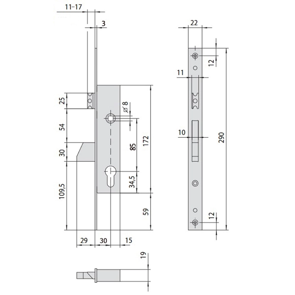 Механизм замка CISA 46215.30 язычок (BS30*85мм, 22 мм) нержавеющая сталь