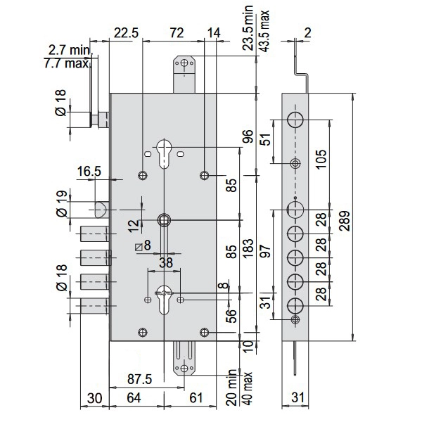 - Додатковий верхній ригель діаметром 18 мм з виходом 22,5 мм.
