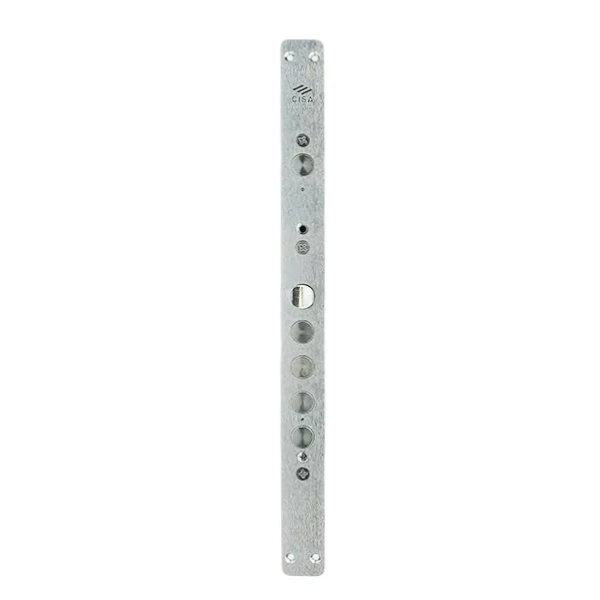 Замок CISA 56785 – це комбінований замок, закривання якого здійснюється двома серцевинами стандарту EURO DIN. Це посилює захисні властивості, тому його зазвичай майстри радять до встановлення в металеві двері посиленої конструкції. Замок 4-х ригельний, але має ще додатковий ригель, що керується верхнім циліндром. Він же блокує роботу основного нижнього механізму.
