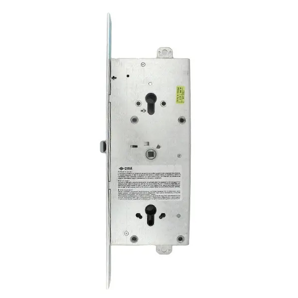 Замок CISA 56786 – це комбінований замок, закривання якого здійснюється двома серцевинами стандарту EURO DIN. Це посилює захисні властивості, тому його зазвичай майстри радять до встановлення в металеві двері посиленої конструкції.