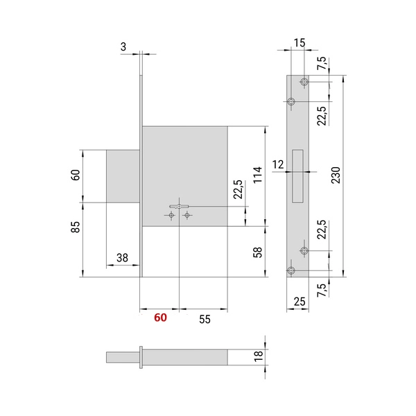Механизм замка CISA 57010 (BS60мм) хром матовый