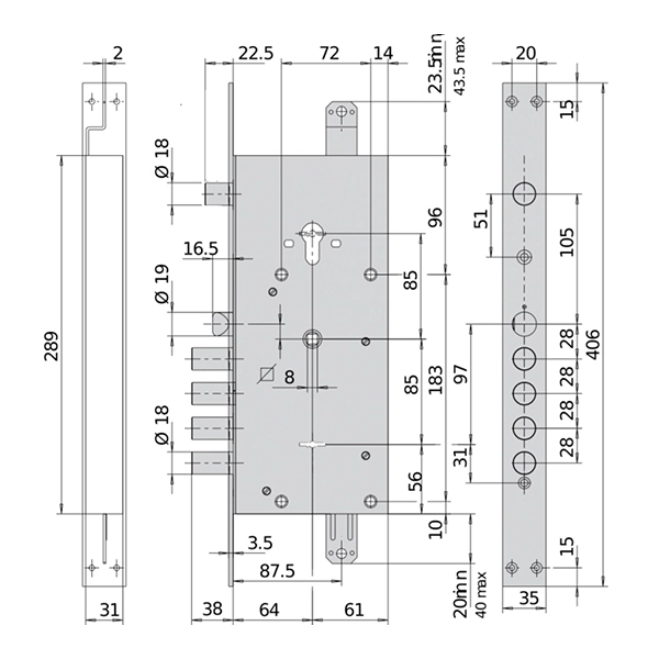 - Додатковий сталевий ригель, вихід – 22,5 мм.