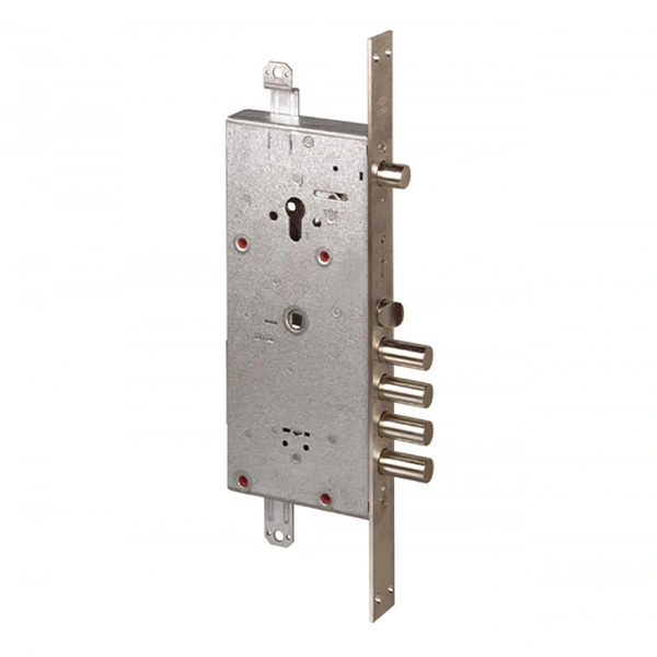 Корпус замка CISA 57985 ALPS поєднує дві системи замикання – сувальдним ключем та циліндром. Користується популярністю для встановлення на вхідних металевих дверях вагою до 200 кг. Нижні чотири ригелі керуються сувальдним ключем. Верхній ригель – циліндром, який в комплект не входить.Відмінність від замка CISA 57986 полягає в тому, що механізми залежні один від одного: при замиканні циліндрового механізма відбувається блокування сувальдного.