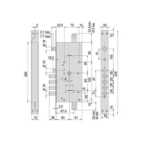 - Додатковий сталевий ригель, вихід – 22,5 мм.