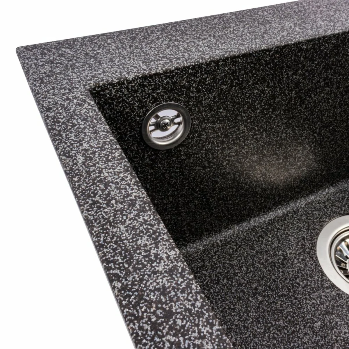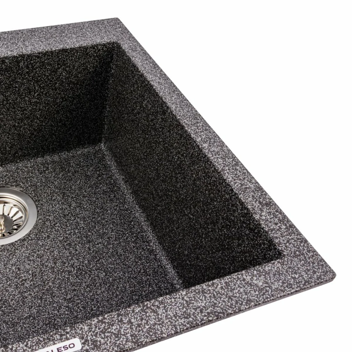 Глибока чаша 440×440×200 мм дозволяє комфортно мити великий посуд. Мийка виготовлена з високоякісного штучного каменю на основі гранітної крихти, що робить її стійкою до механічних ушкоджень, високих температур і впливу побутової хімії.