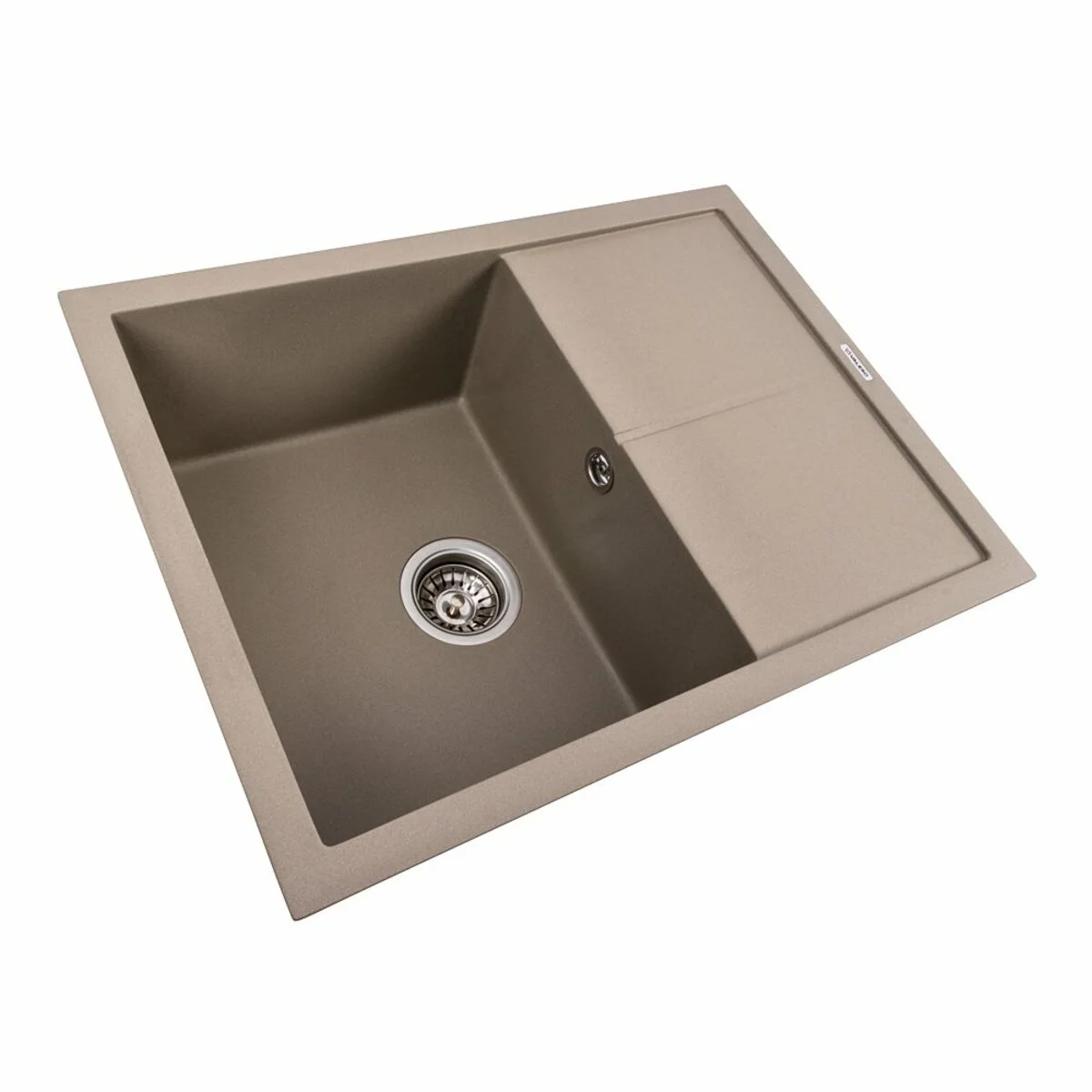 Мийка гранітна Valeso 6550 CRIPTA у кольорі титан — це сучасне, функціональне та естетичне рішення для будь-якої кухні. Виготовлена зі штучного каменю, мийка поєднує довговічність і стильний вигляд, що легко впишеться в інтер'єр.