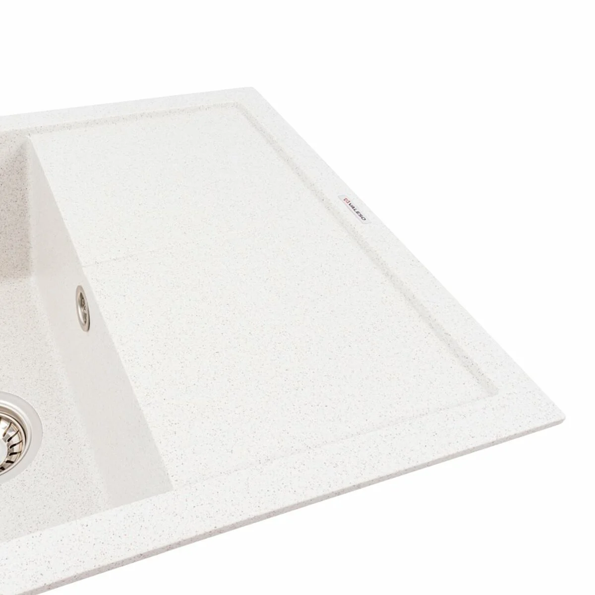 Матеріал мийки — штучний камінь, який має високу щільність, не вбирає вологу, витримує температурні перепади та механічні навантаження. Поверхня легко очищується і зберігає первинний вигляд тривалий час.