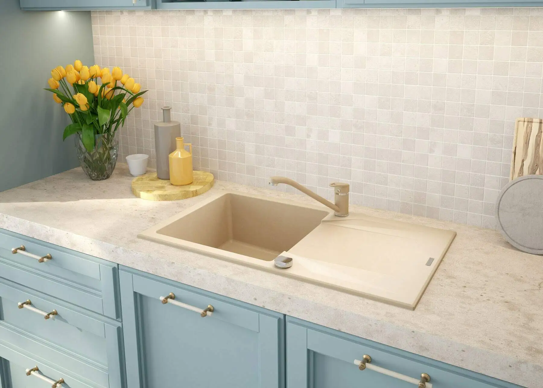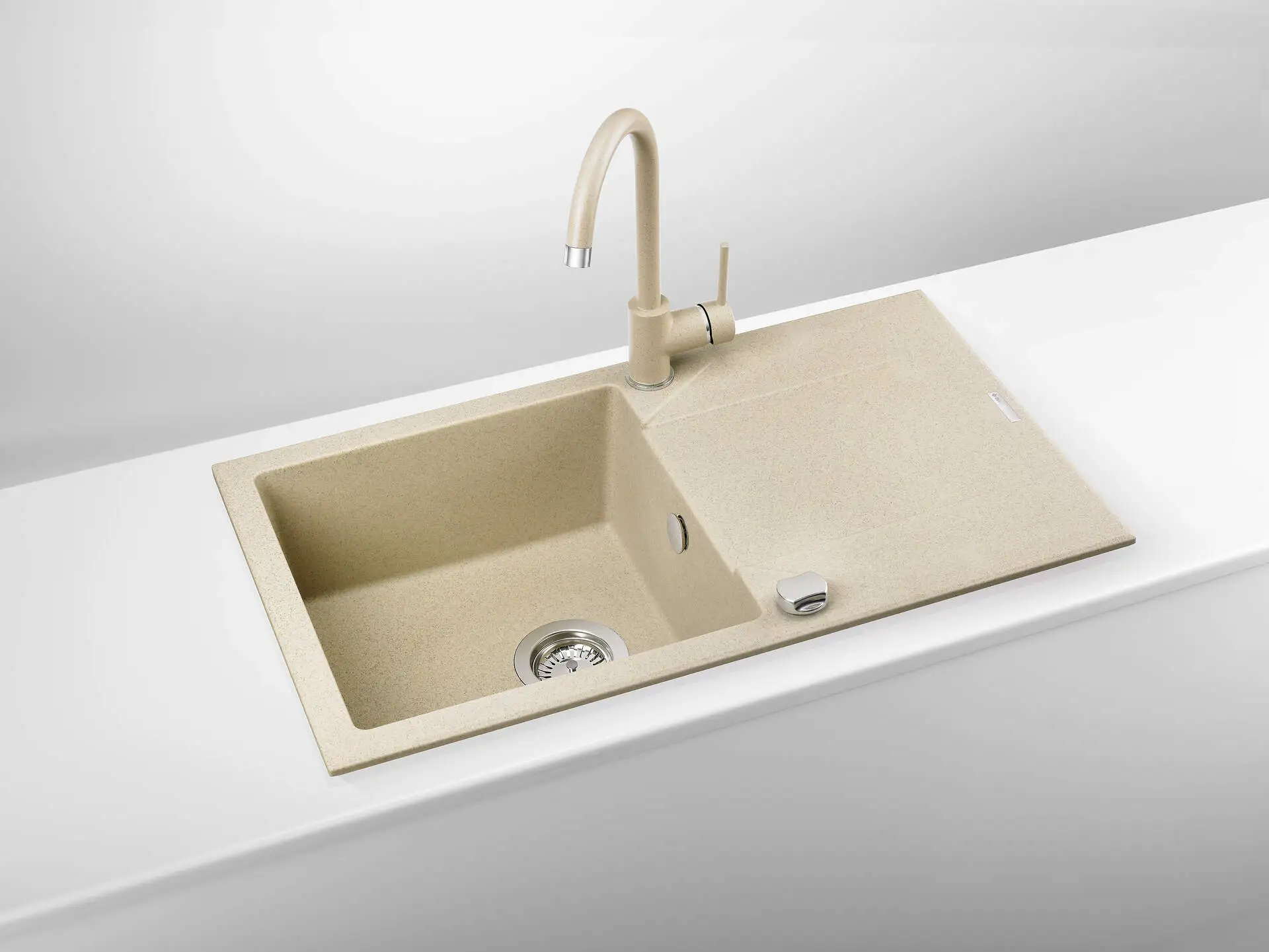 Мийка кухонна Deante Evora, граніт, прямокутник, з крилом, 780х440х193мм, чаша - 1, накладна, пісок