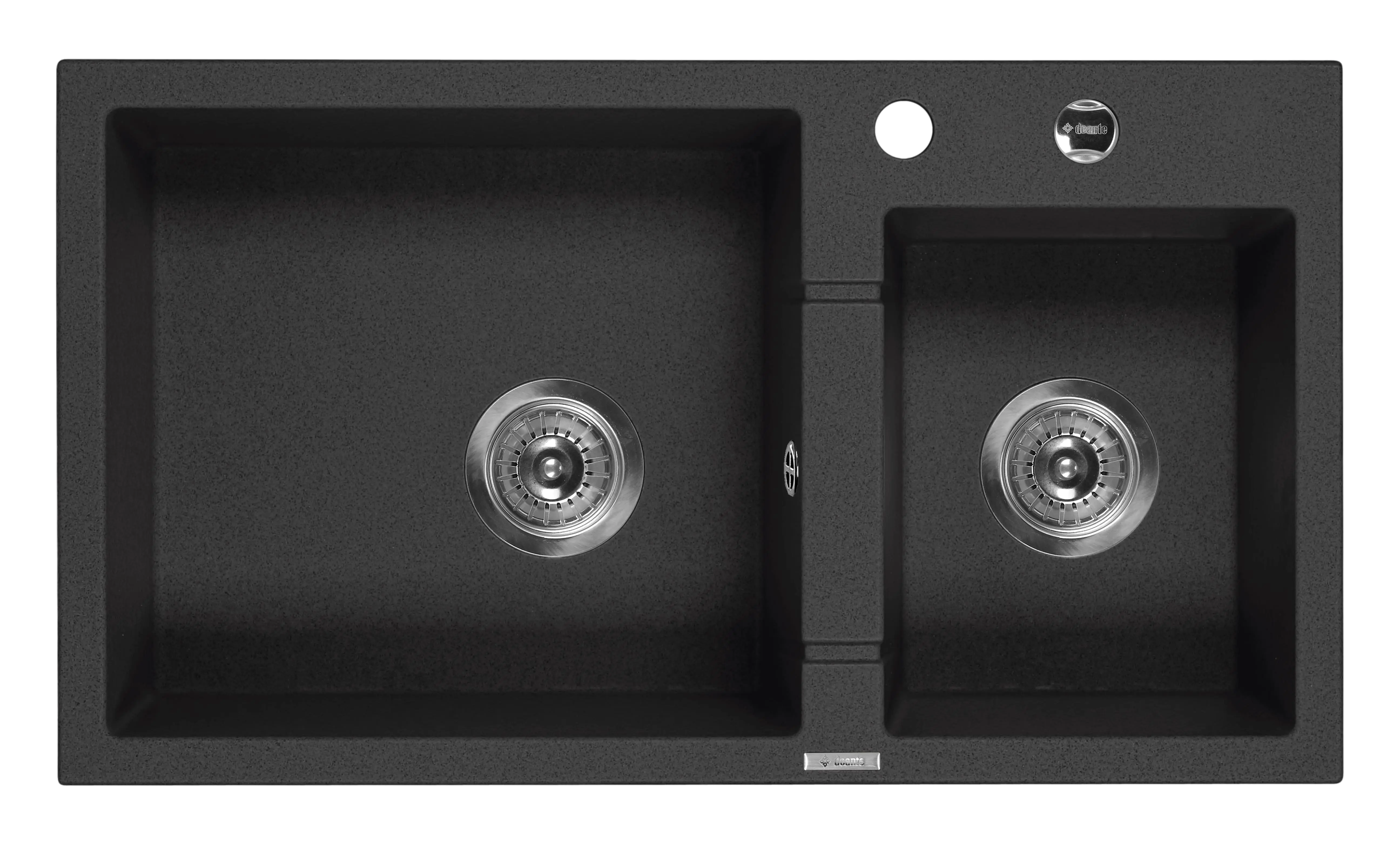 Мийка кухонна Deante Piva, граніт, прямокутна, без крила, 780x440x194мм, чаша - 2, врізна, графіт