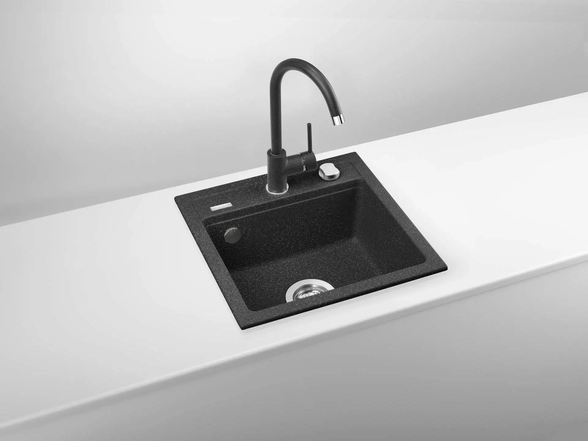 Мийка кухонна Deante Zorba, граніт, квадрат, без крила, 440х440х184мм, чаша - 1, накладна, графіт