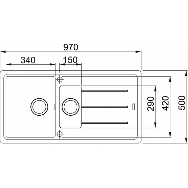 Мийка кухонна Franke Basis фраграніт, прямокутна, з крилом, 970х500х200мм, чаша - 2, врізна, онікс