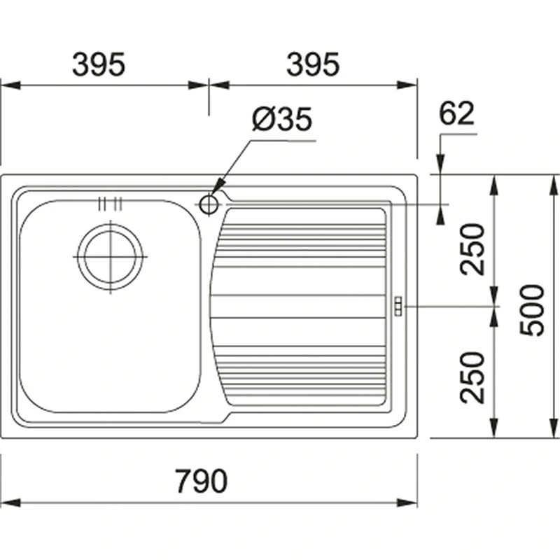 Мийка кухонна Franke Logica, нержавійка, прямокутник, з крилом, 790х500х195мм, чаша - 1, накладна, l