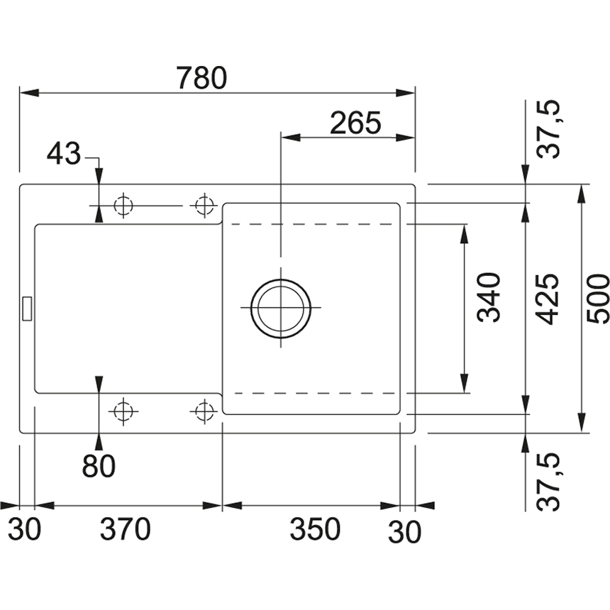 - Размеры основной чаши (ДхШхГ) 350 х 425 x 200 мм