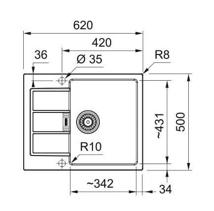 Мийка кухонна Franke Sirius 2 тектонайт, прямокутна, з крилом, 620х500х200мм, чаша - 1, врізна, беже
