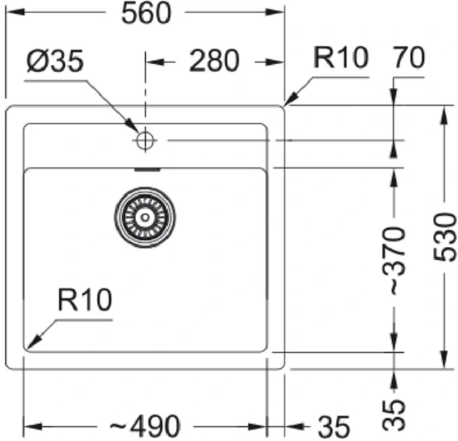 Мийка кухонна Franke Sirius тектонайт, прямокутна, без крила, 560х530х200мм, чаша - 1, врізна, чорни