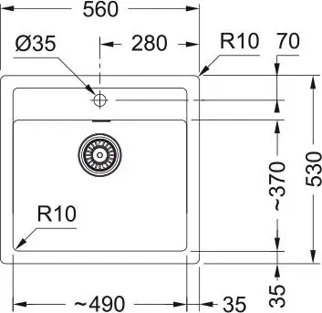 Мийка кухонна Franke Sirius тектонайт, прямокутна, без крила, 560х530х200мм, чаша - 1, врізна, сірий