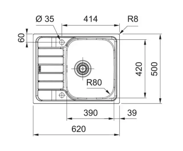 Мийка кухонна Franke Spark, нержавійка, прямокутник, з крилом, 620х500х160мм, чаша - 1, накладна, SK