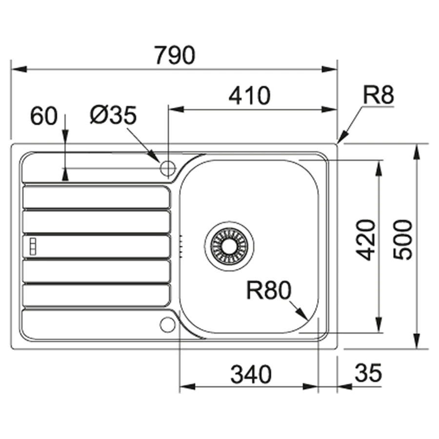 Врізне і обертається кухонна мийка Franke Spark SKL 611-79 (101.0598.809) декор з нержавіючої сталі з однією чашею і крилом.