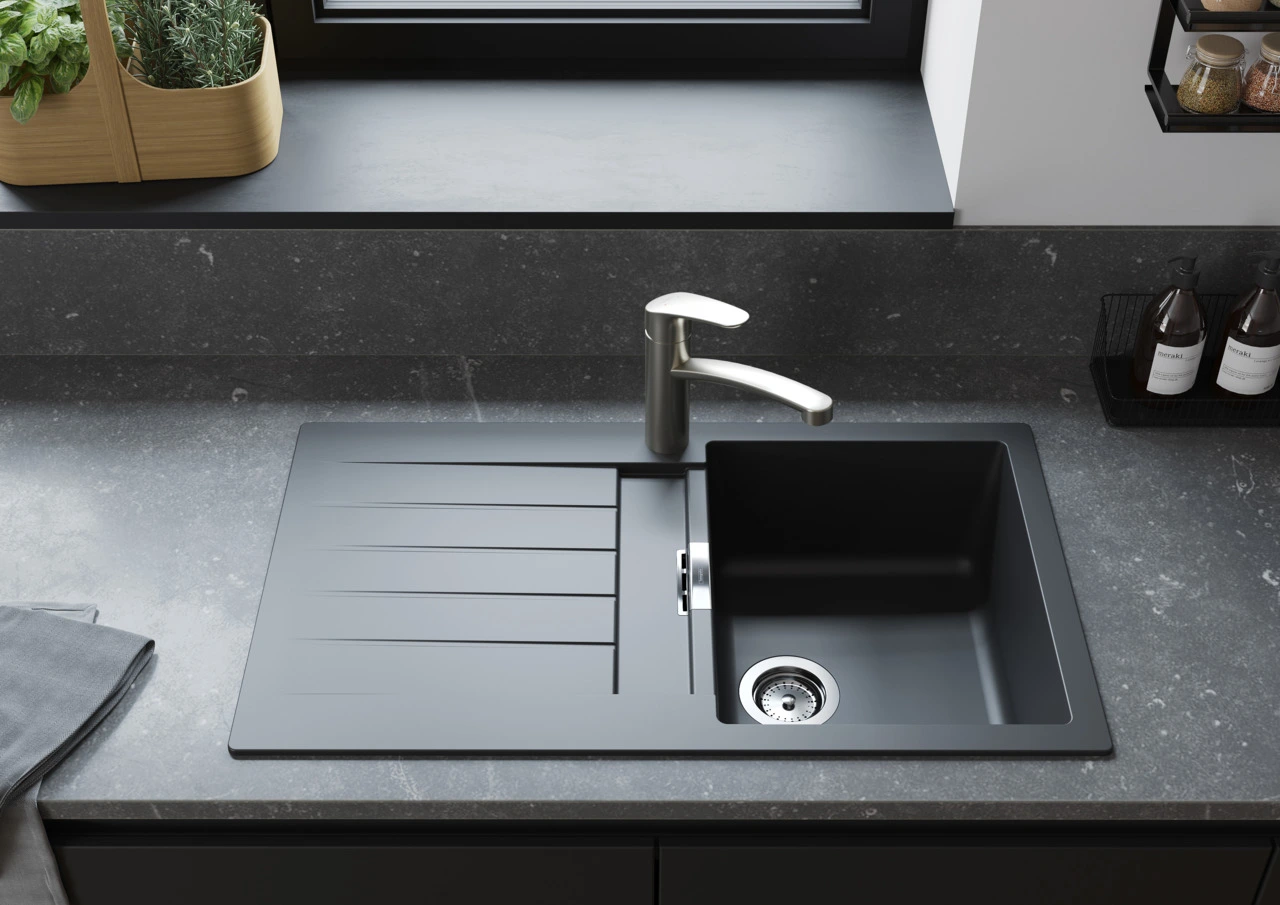 Мийка кухонна Hansgrohe S52, граніт, прямокутник, з крилом, 840х480х190мм, чаша - 1, врізна, S520-F3