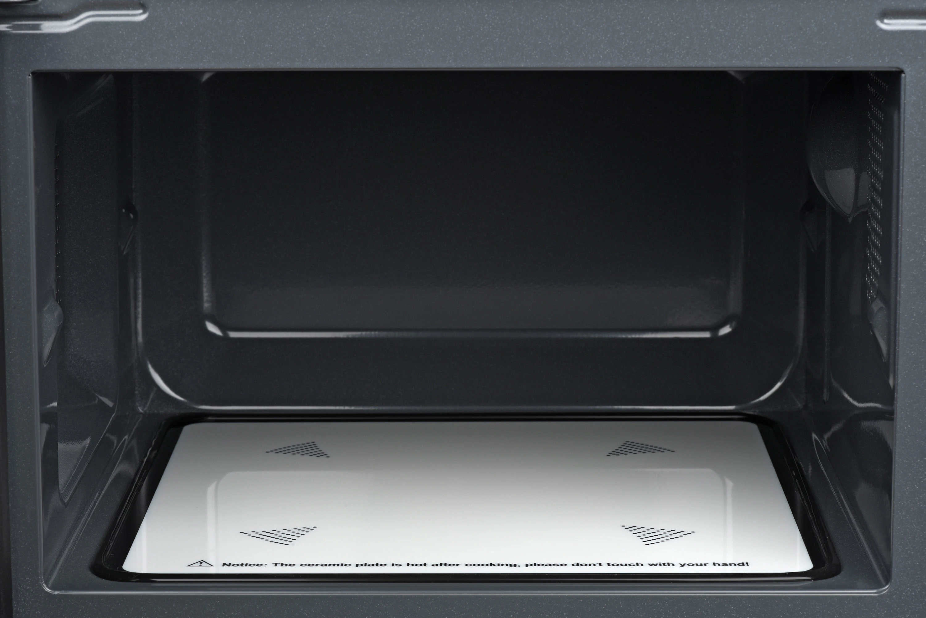 Мікрохвильова піч чорного кольору без поворотного стола. Дизайн доповнено дзеркальними дверцятами. Електронна панель керування оснащена дисплеєм. Потужність GO-E865B – 800 Вт, є п’ять рівнів регулювання, а внутрішній обсяг дорівнює 20 л.