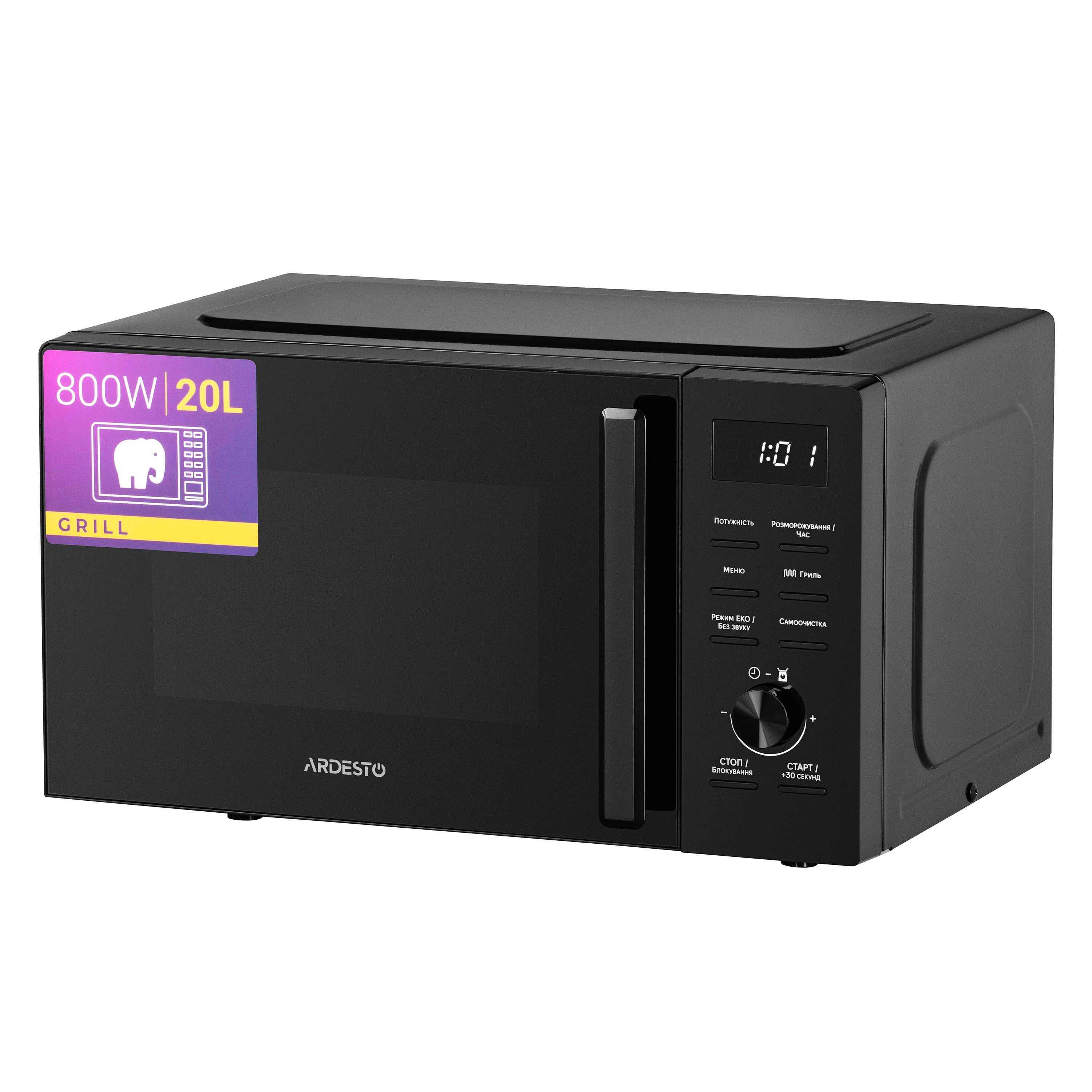Мікрохвильова піч ARDESTO, 20л, електр.керув., 800Вт, гриль, дисплей, відкр.ручкою, чорний
