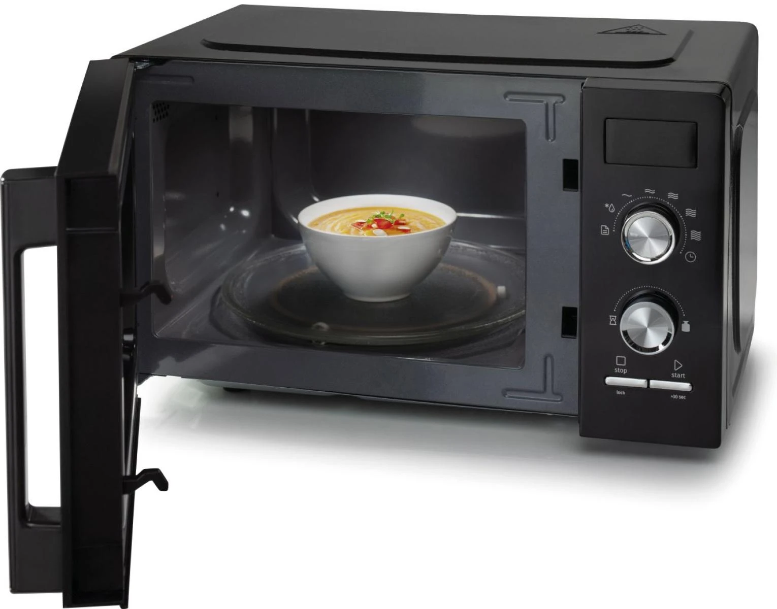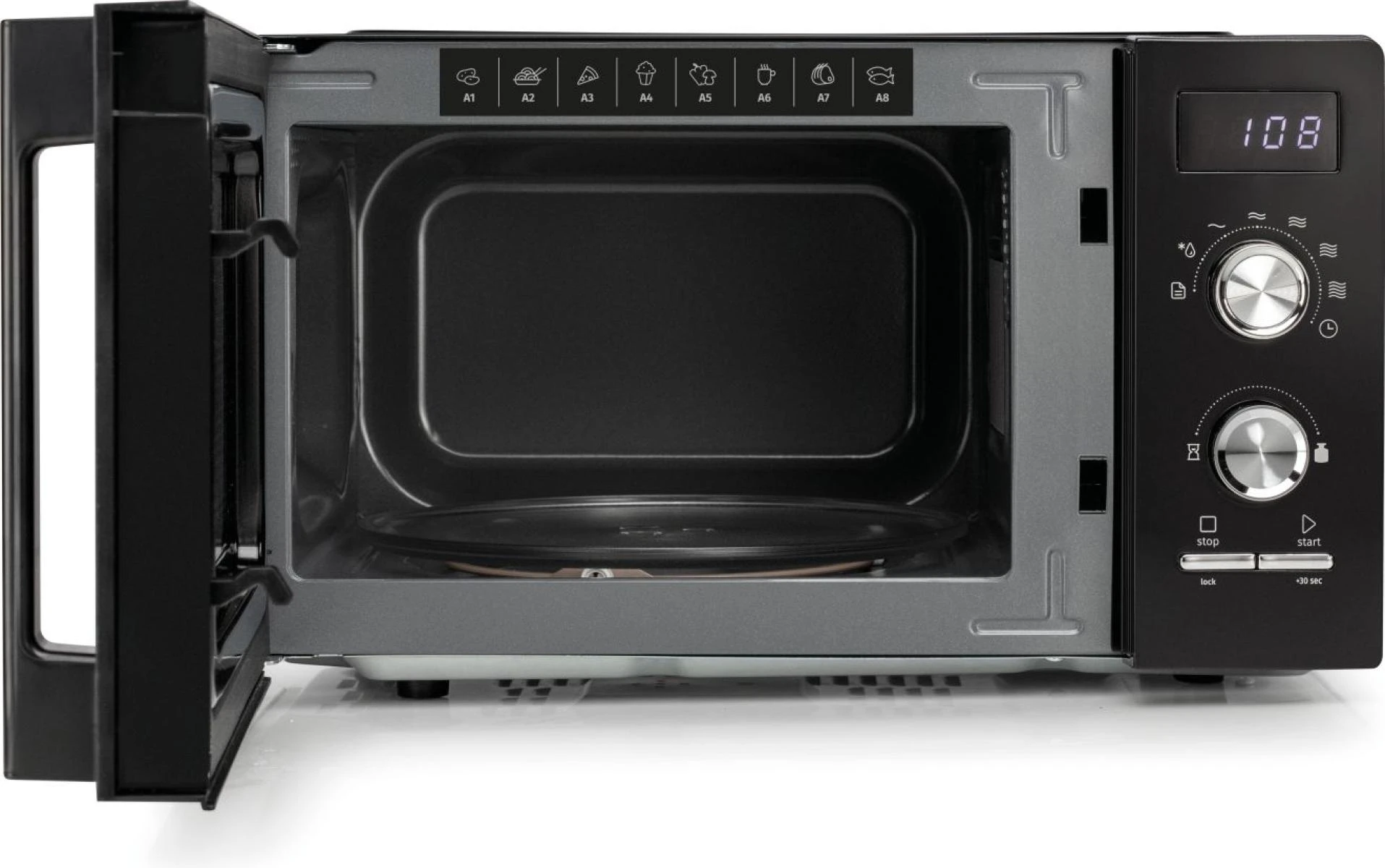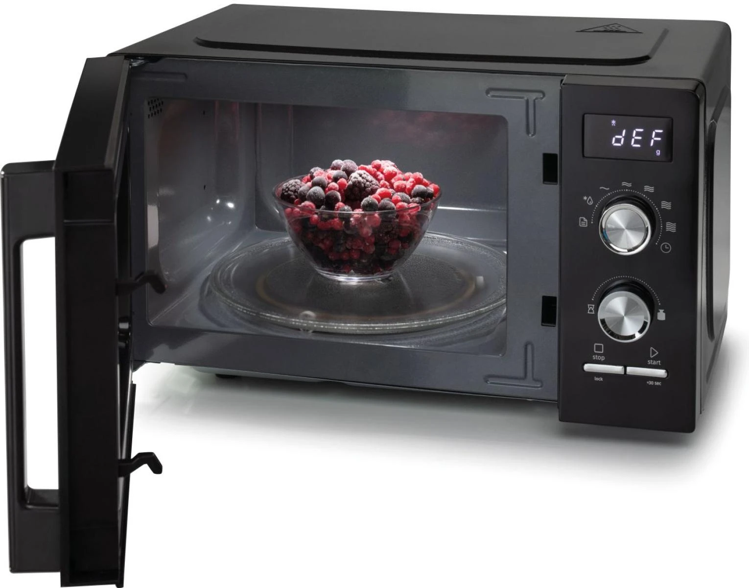 Мікрохвильова піч Gorenje MO20A3BH має об'єм 20 л та 8 попередньо встановлених програм приготування. Вона розморожує продукти, використовуючи короткі інтервали нагрівання при невисокій температурі. Їжа готується рівномірно завдяки постійному обертанню тарілки. Це також сприяє оптимальному розморожуванню. Завдяки п'яти рівням потужності, ви можете відрегулювати процес приготування відповідно до своїх потреб. Висока потужність допоможе швидко нагріти їжу, а низька - приготувати крем-суп. Для легкого очищення внутрішньої поверхні печі використовуйте програму AutoClean. Після завершення просто очистіть піч вологою тканиною.