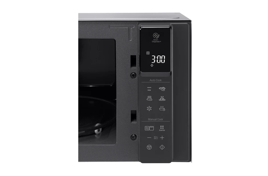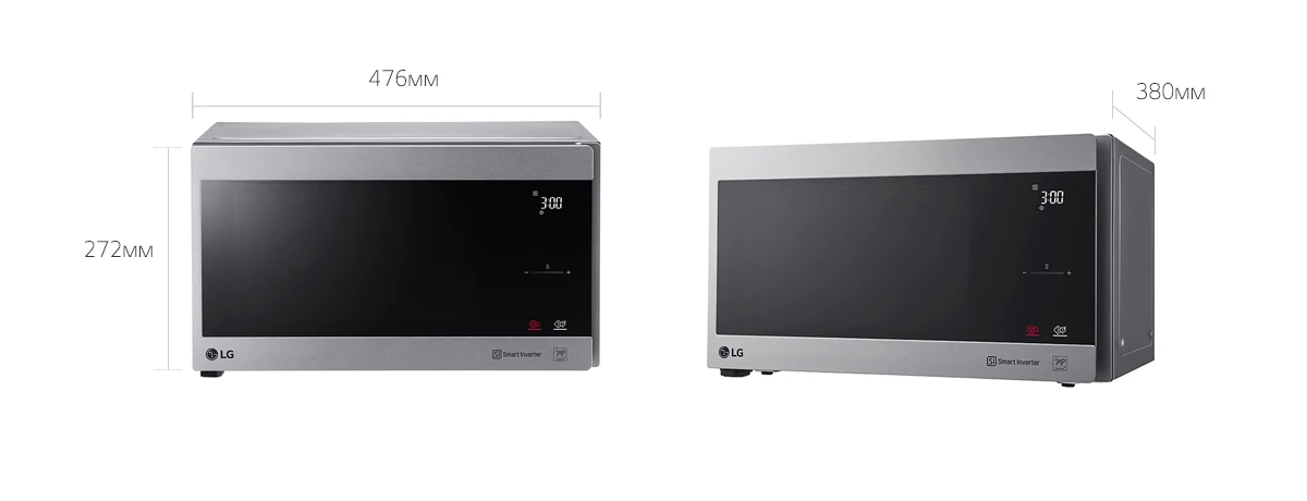 MH6595GIH - мікрохвильова піч LG NeoChef сріблястого кольору. Технологія Smart Inverter. Сенсорне управління і яскрава LED підсвітка. Різні режими приготування, включаючи йогурт. Потужність 1000 Вт. Антибактеріальне покриття для легкого очищення EasyClean.