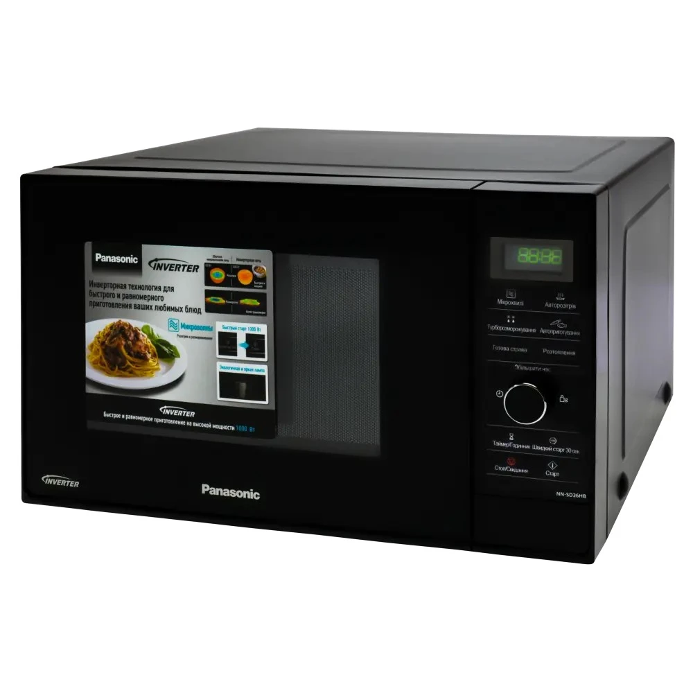 Мікрохвильова піч Panasonic NN-SD36HBZPE з інверторною технологією, яка забезпечує швидке приготування та рівномірний розігрів їжі. Має електронне керування з поворотним перемикачем. Велика місткість на 23 літри дозволяє одночасно готувати їжу для всієї родини. Функція “Швидко 30” дає змогу швидко задати час приготування, додаючи по 30 секунд кожним натисканням кнопки. Максимальний час до 5 хвилин.