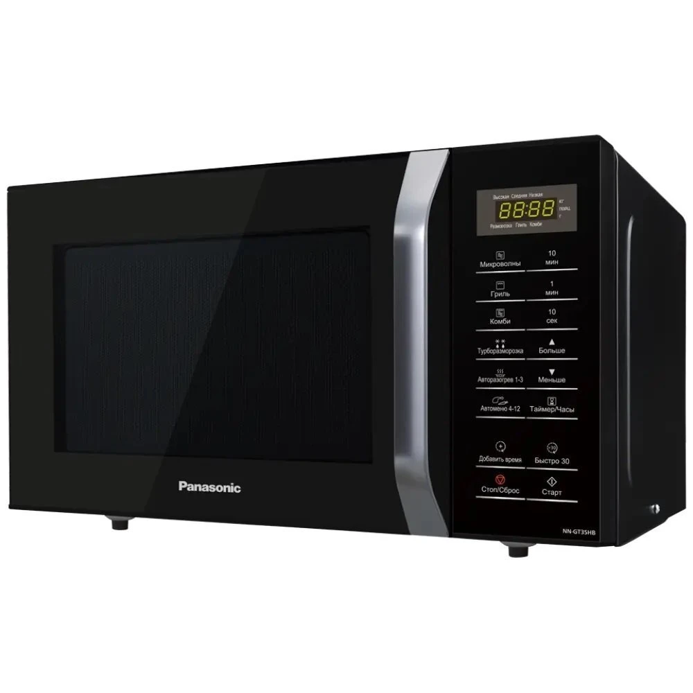 Мікрохвильова піч Panasonic NN-GT35HBZPE має стильний зовнішній вигляд і компактні габарити. Вибір необхідних режимів приготування, встановлення температури та часу здійснюється за допомогою інтуїтивно зрозумілої сенсорної панелі керування.