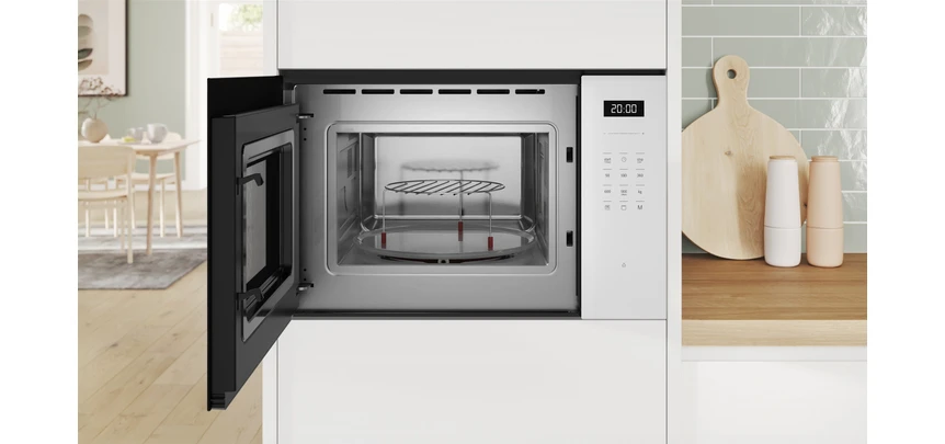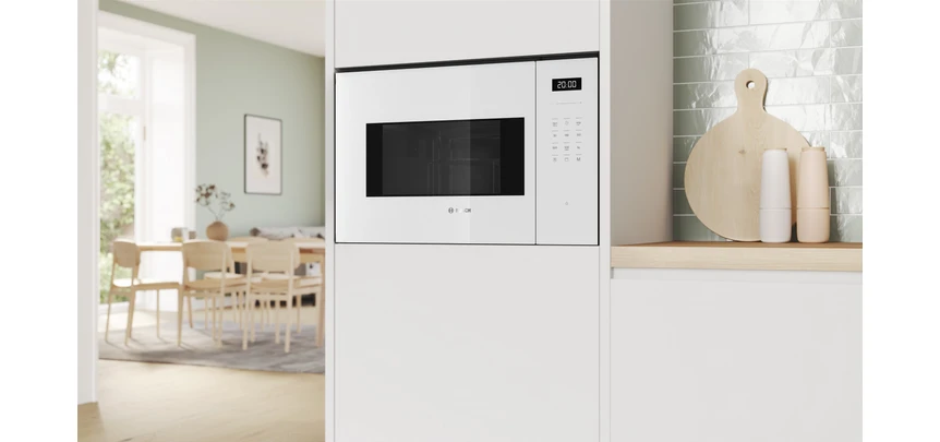 Вбудована мікрохвильова піч СЕРІЯ 6 BOSCH BEL554MW2 поєднує в собі сучасний дизайн, зручність використання та широкий функціонал. Модель вирізняється низькопрофільним сучасним дизайном із сенсорною кнопкою для легкого відчинення дверцят. LED-освітлення забезпечує яскраве підсвічування внутрішньої камери з мінімальним енергоспоживанням. Для зручного догляду передбачена функція гідролітичного очищення: забруднення легко розм’якшуються за допомогою пари з мийним засобом, що значно полегшує процес чищення.
