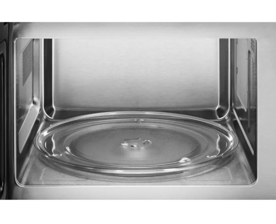 Мікрохвильова піч з грилем Electrolux LMS4253TMK виконана в чорному кольорі і встановлюється встраиванием в кухонний гарнітур. З її допомогою можна швидко приготувати різні страви, розігріти їх, а також розморозити продукти. Потужність СВЧ - випромінювання 900 Вт регулюється 8 рівнями, що зручно для застосування різних теплових режимів. Вбудований гриль потужністю 1000 Вт розширить кулінарне меню можливістю приготування страв з хрусткою і рум'яною скоринкою. У моделі встановлений поворотний стіл діаметром 270 мм, що забезпечує рівномірний прогрів їжі, що готується з усіх боків. Внутрішні стінки камери покриті високоміцної і термостійкої легко відмивається емаллю. Додатковою зручністю під час експлуатації приладу є функції автоматичного розморожування і приготування продуктів за вагою. Управляється мікрохвильова піч з грилем Electrolux LMS4253TMK електронним способом за допомогою сенсорних кнопок і РК-дисплея.