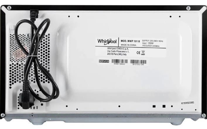 Whirlpool MWP 101 B - компактна і практична мікрохвильова піч. Вона має 6 рівнів потужності, потужність мікрохвиль становить 700 Вт, діаметр обертової тарілки становить 25 сантиметрів. Мікрохвильова піч оснащена традиційним механічним керуванням.