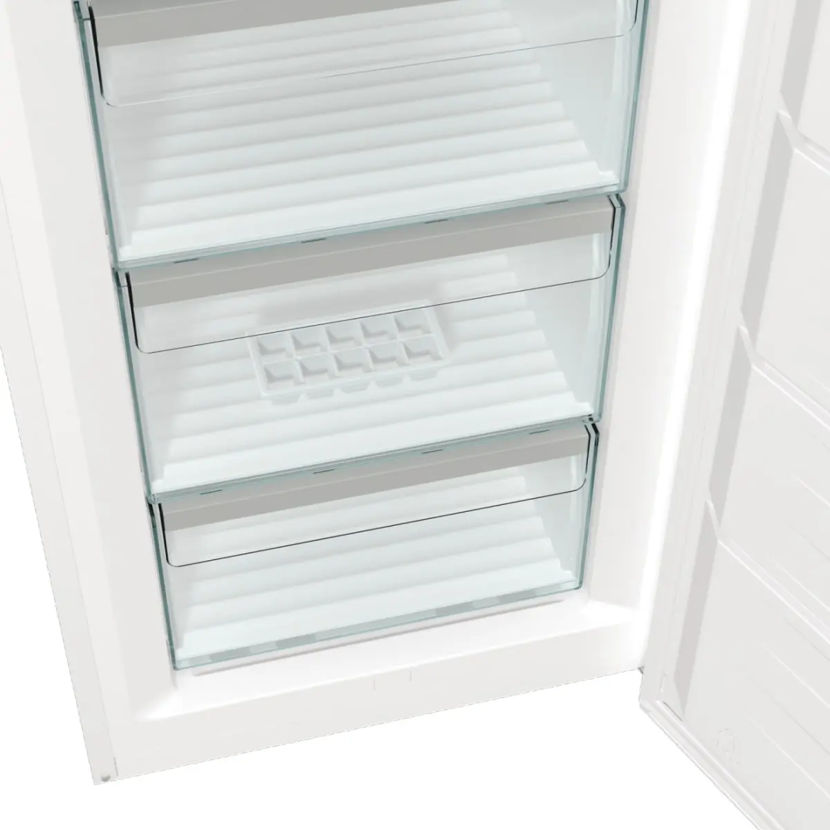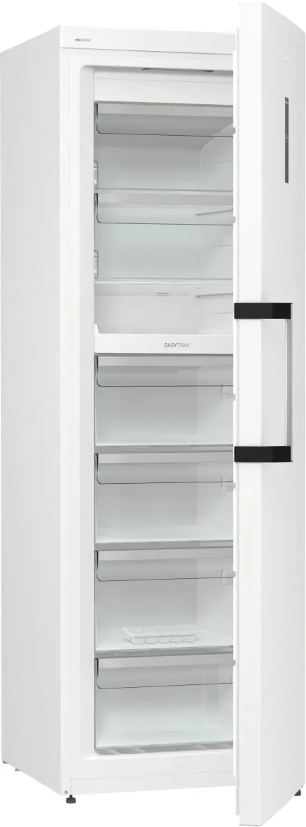 Вертикальна морозильна камера Gorenje FN619EAW6 оснащена системою No Frost, яка запобігає утворенню льоду та забезпечує легке обслуговування. Завдяки функції FastFreeze продукти швидко заморожуються при температурі -24°C, що дозволяє зберегти більшість мінералів. Інверторний компресор забезпечує тиху роботу та економію енергії. Світлодіодне освітлення всередині камери забезпечує чудову видимість. Спеціальна шухляда EasyTray дозволяє легко діставати заморожені продукти. Морозильна камера має електронне керування через світлодіодний дисплей, що робить її зручною у використанні.